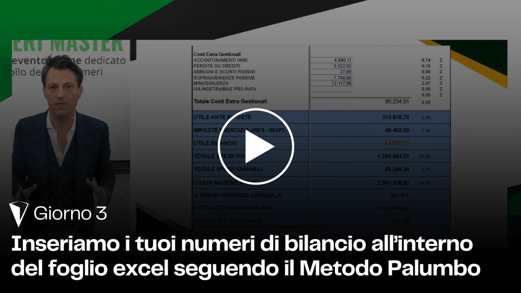 Inseriamo i tuoi numeri di bilancio all’interno del foglio excel seguendo il Metodo Palumbo