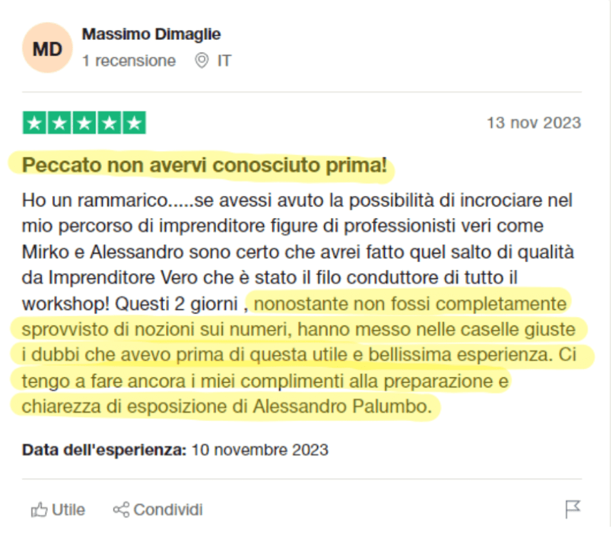 Tutto quello che insegno deriva da test sulle mie aziende e quelle di amici imprenditori appartenenti ad altri settori. È questo il motivo per cui funziona!